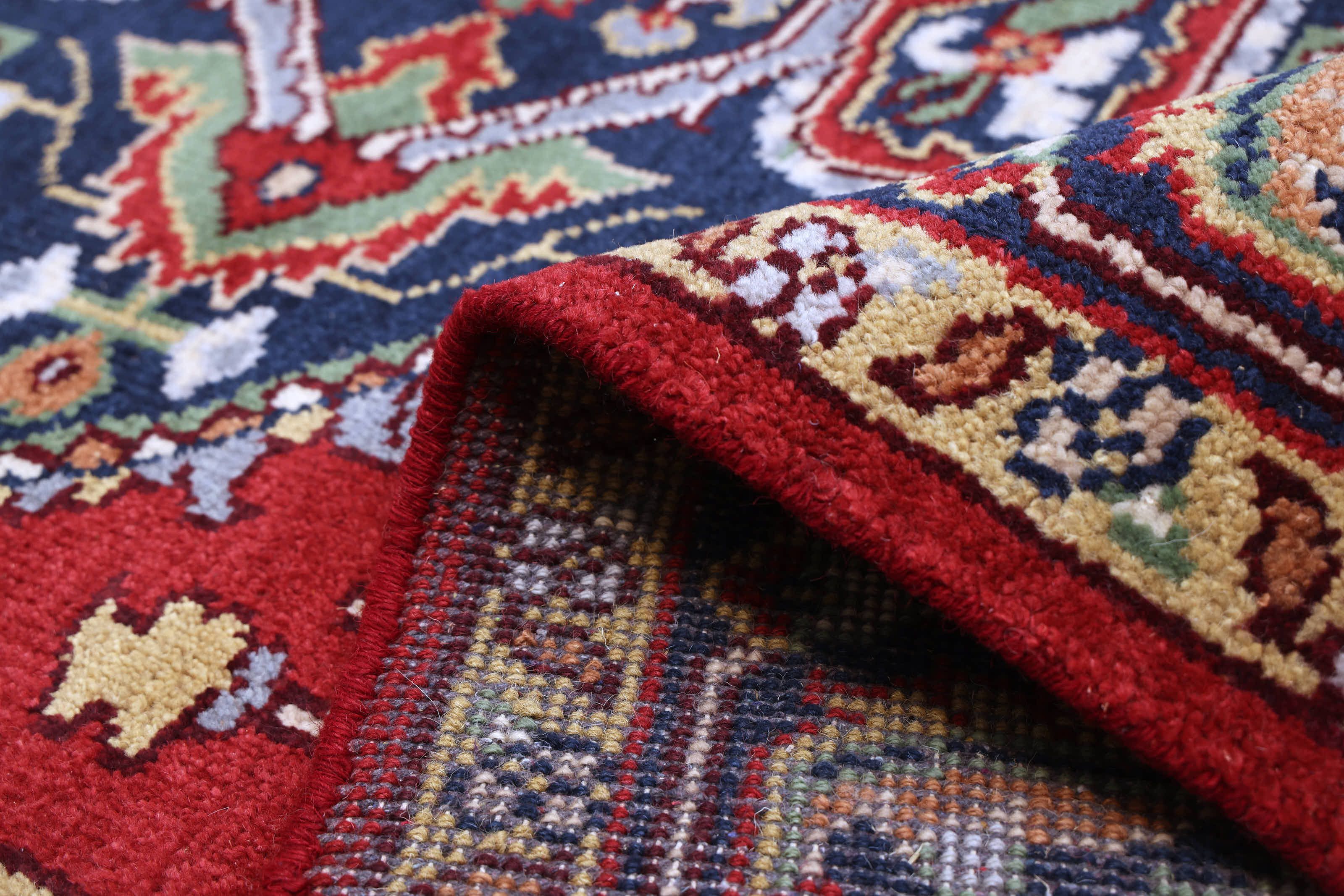 Fait à la main en Inde, ce tapis s’inspire de l’art classique persan Heriz Serapi, avec des motifs géométriques audacieux et un emblématique médaillon qui apportent une touche de noblesse et de caractère à tout espace.