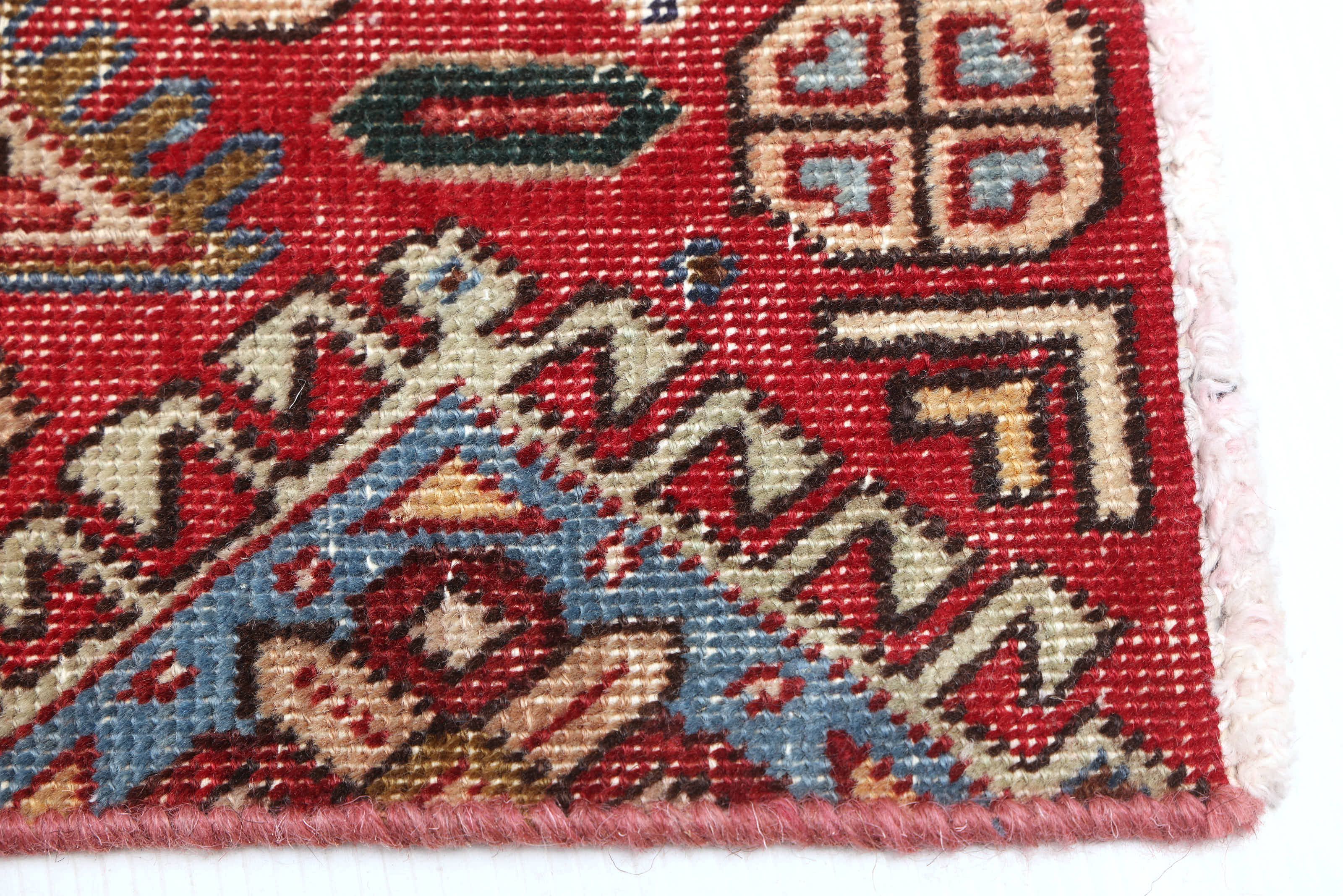 Fait à la main en Turquie, ce tapis Antalya Vintage se distingue par ses motifs géométriques et ses coins à médaillon, reflétant le savoir-faire traditionnel turc revisité avec une patine contemporaine.
