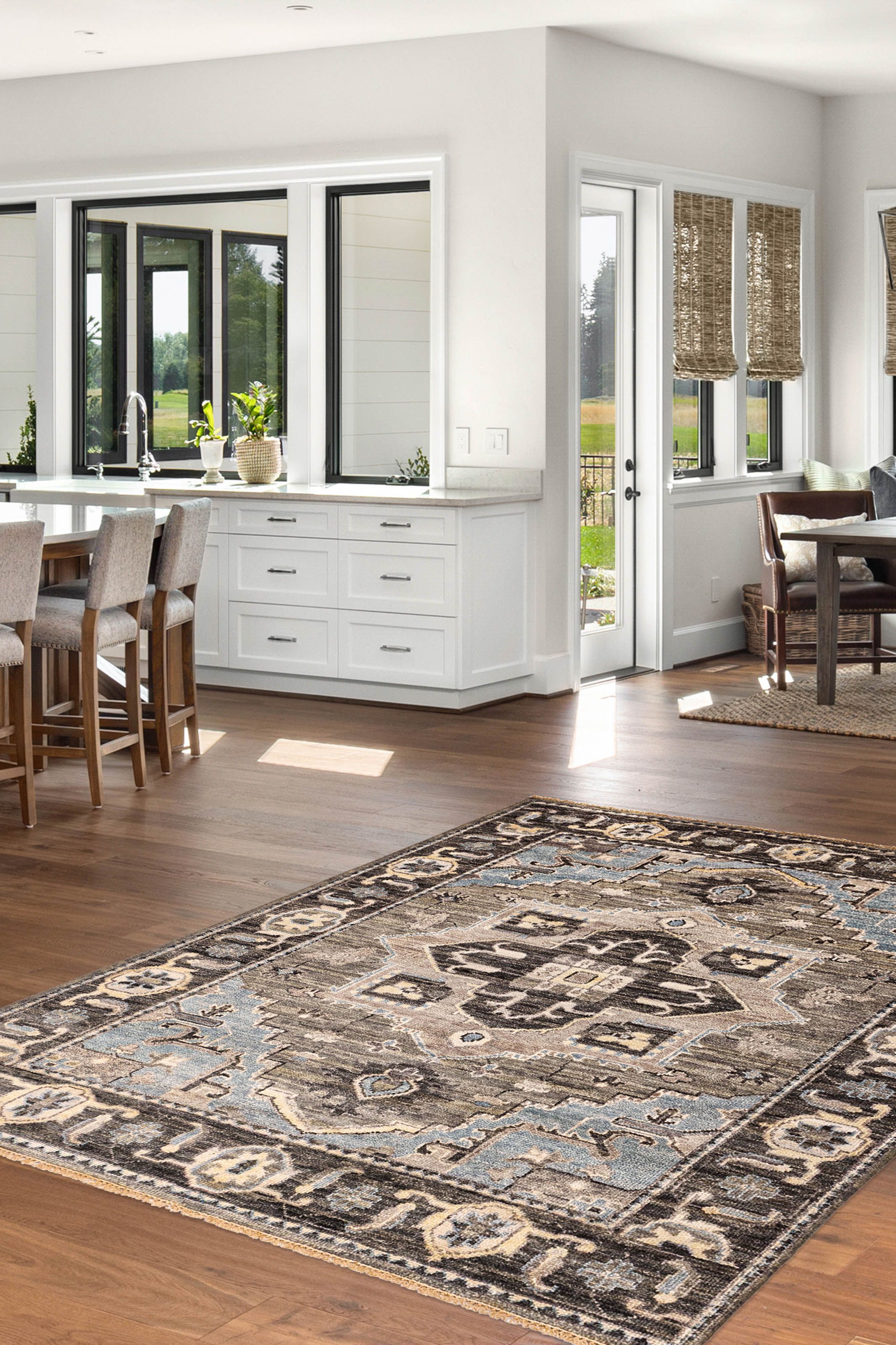 Handmade in India, this Jules Serapi rug draws inspiration from the celebrated Sutanabad and Mirzapur traditions, featuring a bold geometric medallion design that echoes the elegance of classic Persian artistry.
